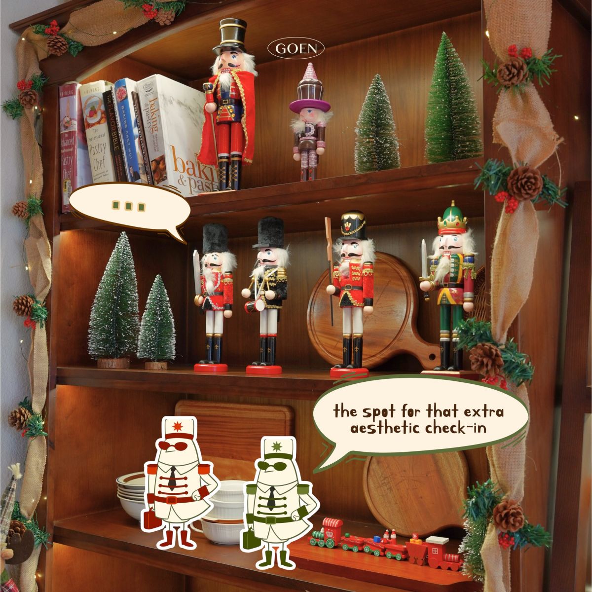 Không gian tuy nhỏ nhưng tụi mình vẫn quyết không “tha" một ngóc ngách nào , đảm bảo bạn đến GOEN thì mọi vị trí đều mang đến cảm giác Giáng sinh thật ấm áp. Nếu chưa biết nên check-in chỗ nào thì hãy cùng bé Sẻ khám phá trong chuyến “du lịch" ngắn hôm nay nhá