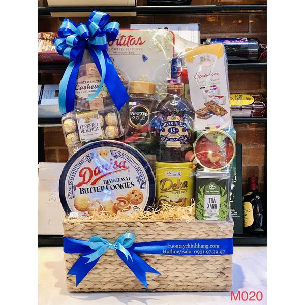 M020 - Giỏ quà đan lát thủ công cao cấp Tết 2022, rượu Chivas 18 Chính hãng cao cấp